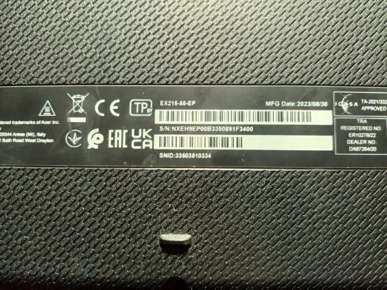 Laptop Acer czarny 2022r N24Q6, s/n NXB81EP...
