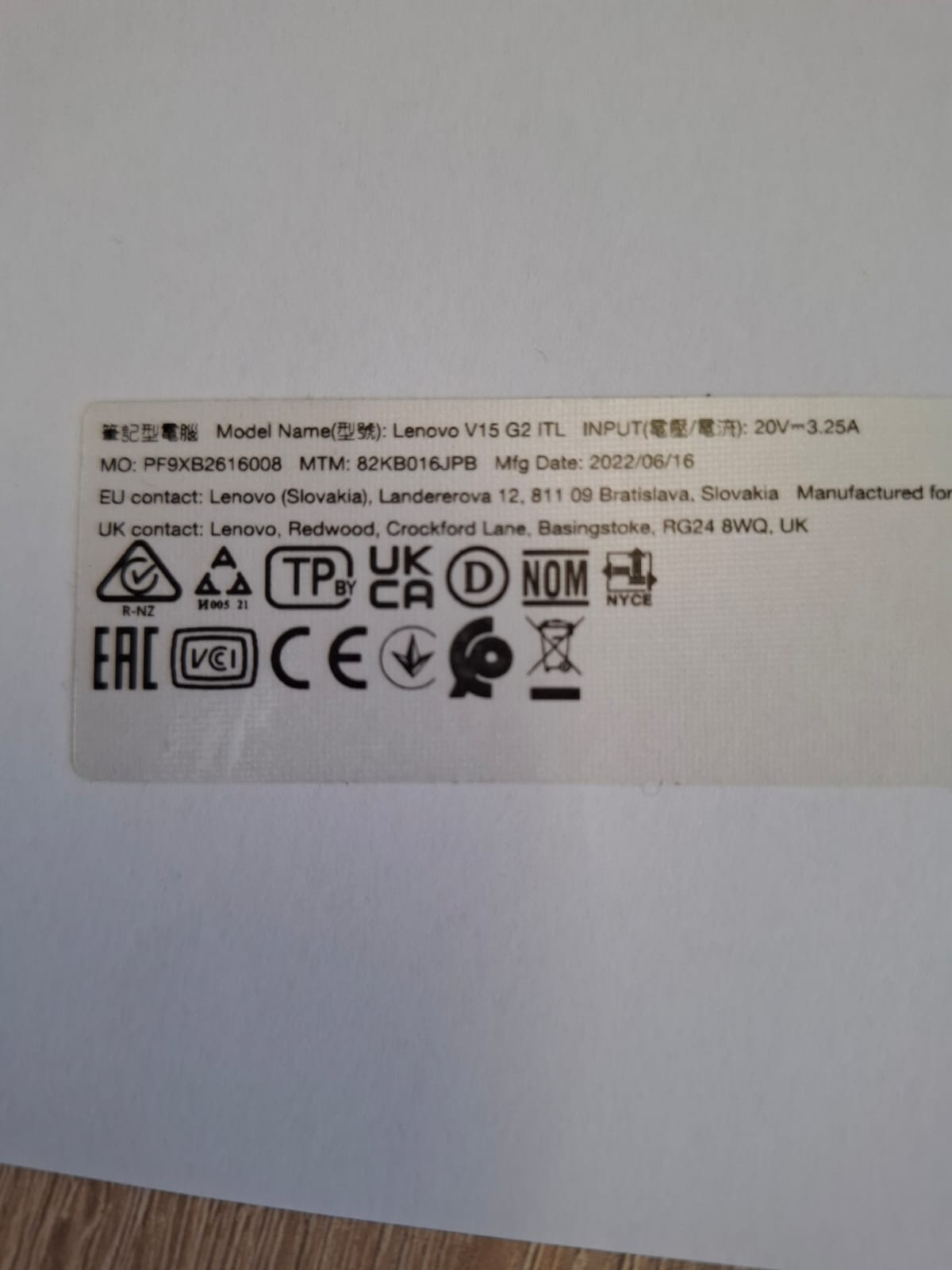 Laptop Lenovo 3X02637203