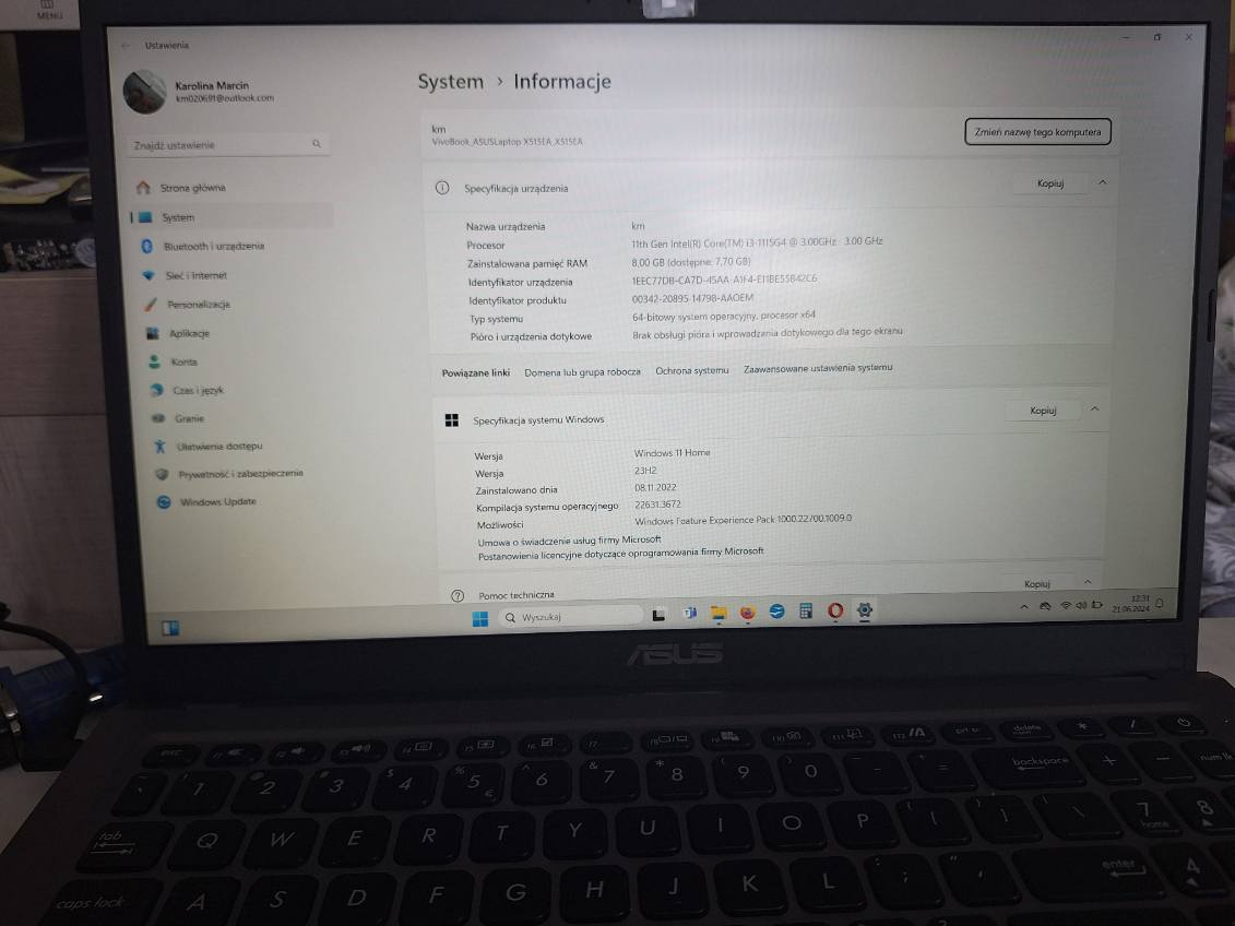 Laptop Asus M1502YA czarny 2024r, s/n RAN0C...