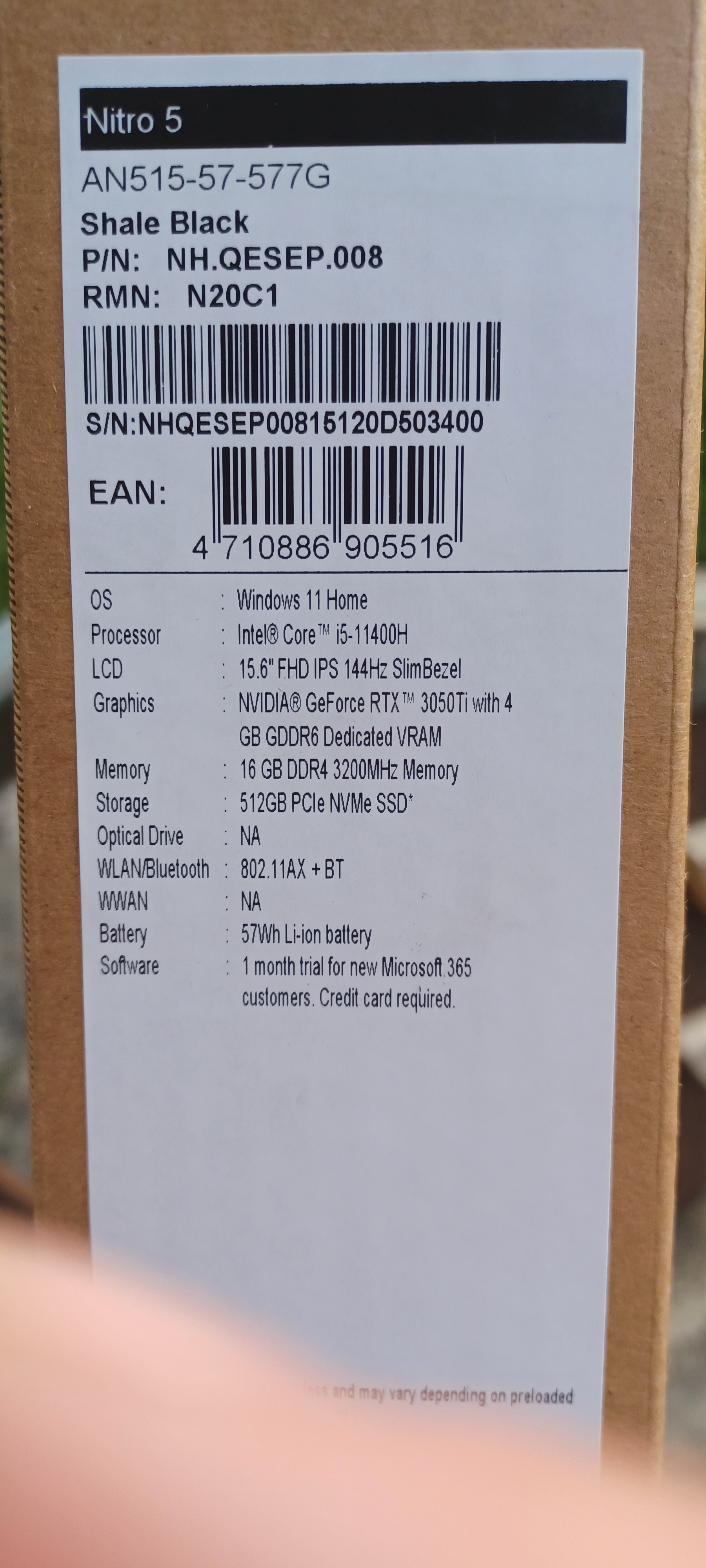 LAPTOP ACER NITRO 5 AN515-57-577G