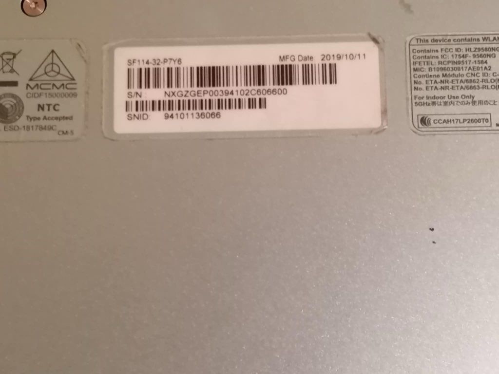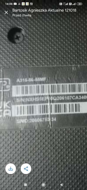 Laptop ACER czarny model 11322650416 seria ...